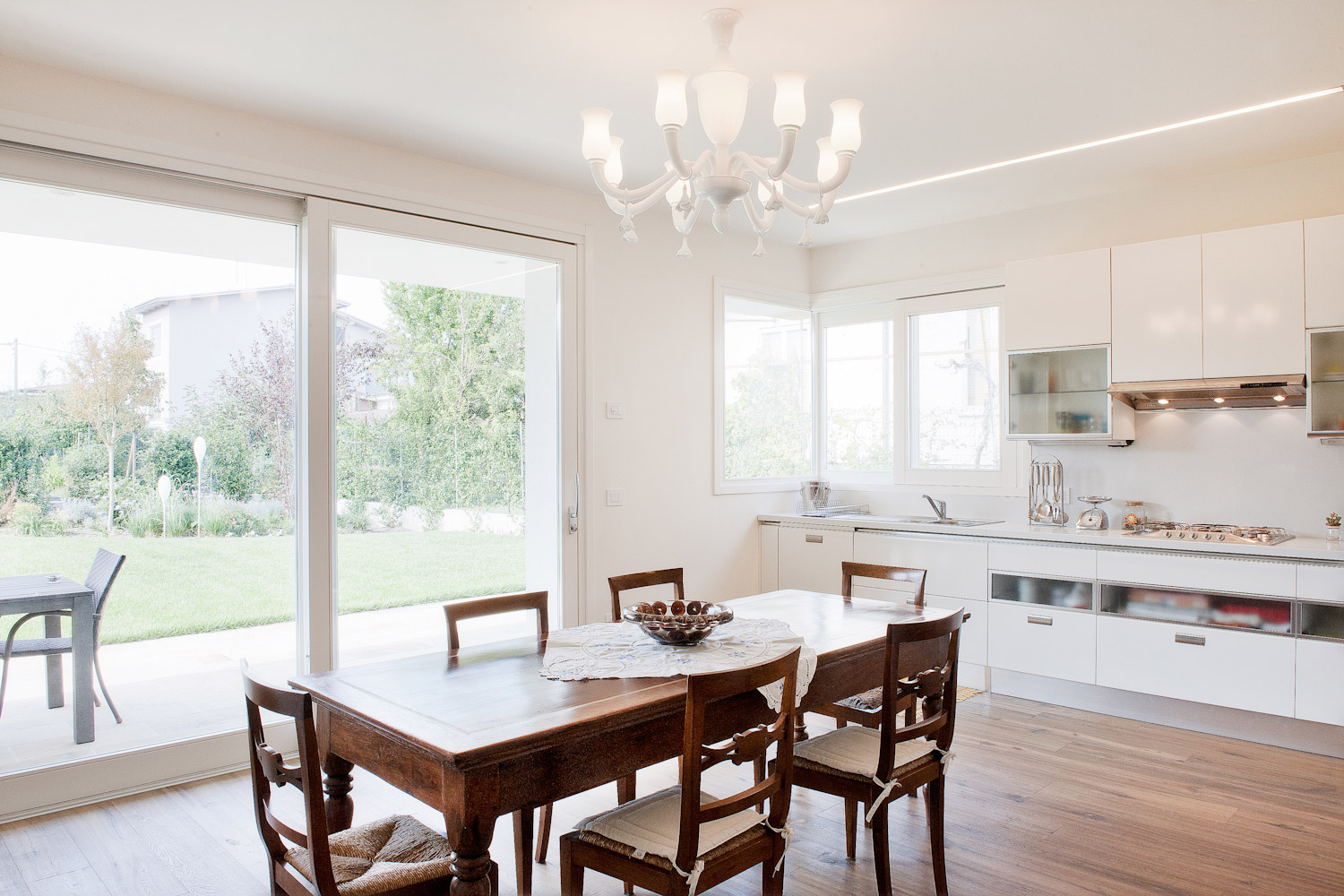Un’abitazione che si distingue per luce, armonia e stile contemporaneo. Le finestre in legno modello Tecnical 70 avvolgono gli ambienti con la loro naturale eleganza, mentre le ampie vetrate lasciano entrare la luce in ogni angolo, creando spazi luminosi, accoglienti e dal fascino moderno.